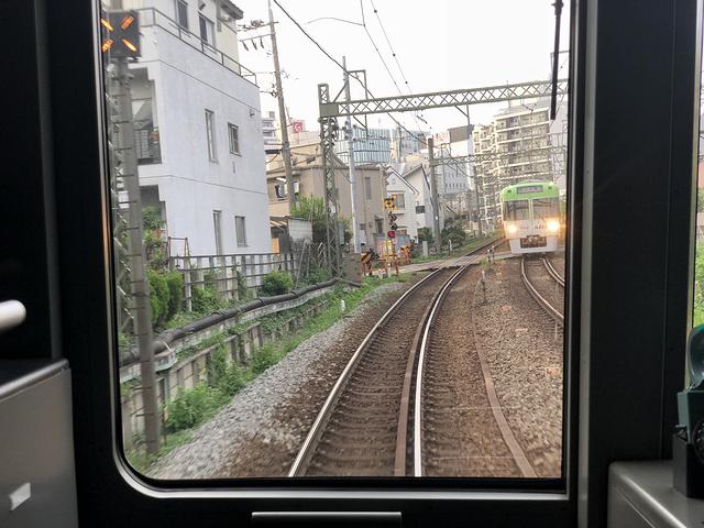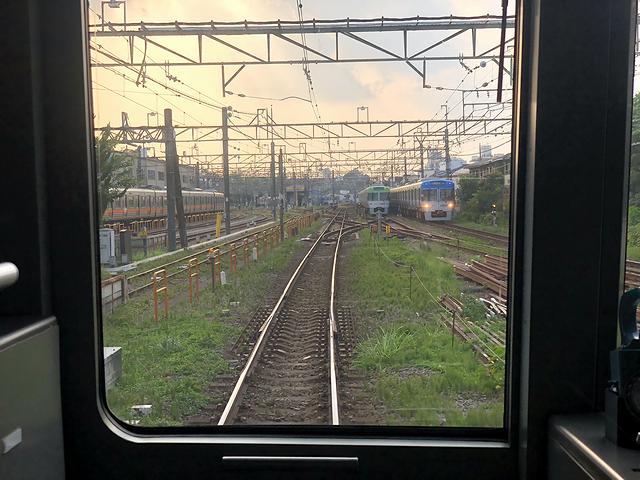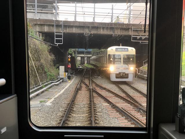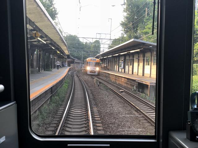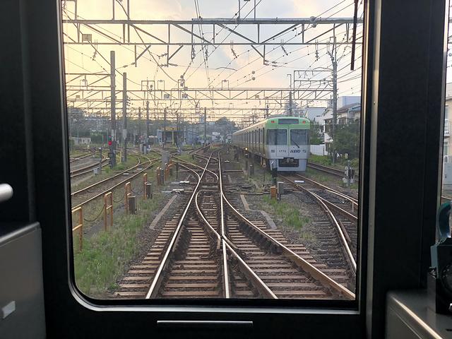 永福町駅を発車するとすぐ左手に車両の洗浄装置があり、その反対側の、現在は京王バスの営業所になっているあたりには、かつて車両基地があったそうで。で、その後、次の西永福駅を挟んでその次の浜田山駅までの1km以上にわたって直線区間が続きます。そして次の高井戸駅を過ぎるとちょっとしたアップダウンが有り、その後、現在車両基地のある富士見ヶ丘駅に到着。ここで乗務員が交代しました。