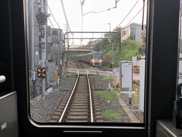 定刻に渋谷駅を発車すると、列車はすぐにトンネルへと突入。このあたり、渋「谷」だけあってアップダウンに富んだ地形のため、次の神泉駅発車後もトンネルに入ります。で、この2つが井の頭線にあるトンネルの全てで、その後は基本地平と浅い切り通し、そしてたまに盛り土区間含む高架といった感じで進みます。そして駒場東大前駅を発車して駒場野公園の緑を抜けると、基本的に住宅地の中を走る感じになり、踏切が頻出するのですが、基本的には生活道路といった細い道のみで、交差する大きな道路については、立体交差化が完了しているそうで。