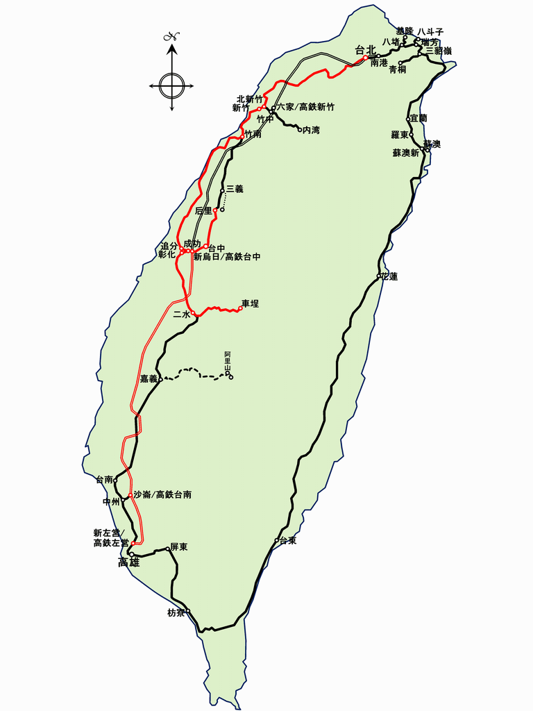 元々縦貫線は、人口の多い台中市を経由するためと、有事の際に艦砲射撃によって被害が出るのを防ぐため、山間部に路線が建設された。しかしその後、貨物輸送の需要が増大し、積みきれない荷物が駅に山積みとなる事態まで発生したため、貨物列車を増やす必要に迫られたのだが、当時は勾配に弱い蒸気機関車しかなく、勾配のきつい山間部を通る路線に重量の重い貨物列車を増やすのは難しかったので、勾配の緩い海岸部に新たな路線を建設する事になった。かくして山線と海線が出来たのだが、山線が開業したのが1908年、海線が開業したのが1922年のことである。