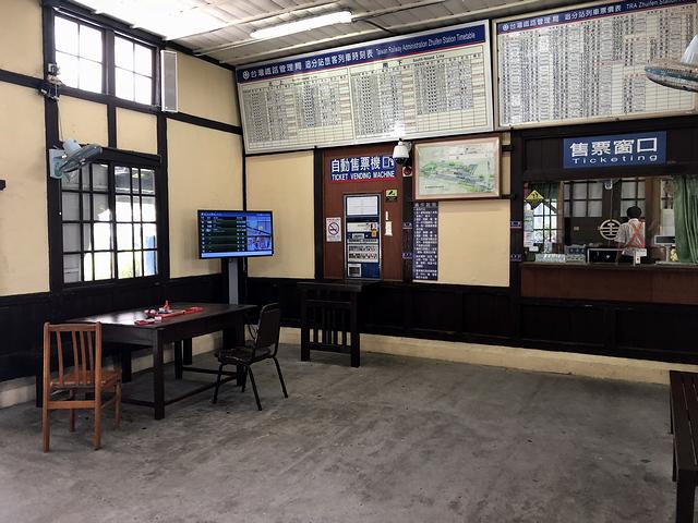 逆に、この待ち時間を利用して、追分駅をじっくりと見られるのが嬉しいところだ。というのも、現在も使われている木造駅舎は、海線が開業した1922年に建てられた大変貴重なもので、台中市の古跡にも指定されている。ちなみに海線ではもう1つ、日南駅にも開業当時からの木造駅舎があり、どちらも観光地としてPRされているようである。