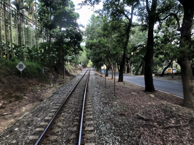 タブレットを携えた運転手が席に座り、定刻となり二水を発車した列車は、ちょっとの間右手に縦貫線を見つつ走るのだが、その縦貫線との間の、それほど広くないところにも畑があるのが面白い。そして縦貫線と徐々に離れていき、左にぐいとカーブ切ったと思ったら最初の停車駅である源泉(ユァンチュエン)に到着。左手から正面に掛けて続く低い山が見える中、列車はその後もドラゴンフルーツの他、マンゴー、バナナ、椰子といった果樹園と水田が広がる中、時折林を突っ切るような感じで走り濁水(ジャオシュイ)に到着。