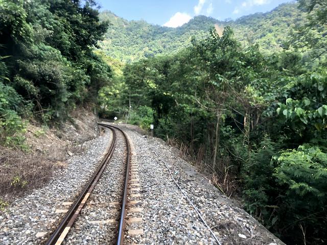 集集を発車した後は、最初こそ椰子やバナナの木が見えたものの、あとは森の中を進む。右手には見えずとも濁水渓が有るはずだし、極端な急勾配もないので、山中を走っている感覚は無いのだが、短いトンネルをいくつも潜りながら更に高度を上げてくようだ。気が付けば、正面に見えていた山が随分近くなっている。