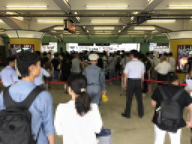 それから自然と足が速まり、午前10時過ぎ、正門付近に到着。ここで長蛇の列が出来ていたら諦めるしか無かったのですが、行列は出来ているものの、長さはさほどでもない感じ。これなら、指定席に座れそうです。