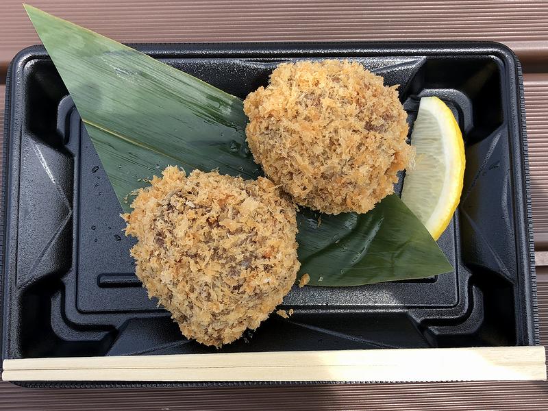 お次は、個人的にこれまた好物のメンチカツ。まず、箸で割ろうとした時点で違いが。サクッとした衣の下のタネは、一般的なメンチカツのミシっとした感触と違って、ホロっトロっとした感触が。その感触=口当たりなのですが、口に入れるとしっかりと味が付いたタネは、かなりスパイシー。はじめは、変化球的な味わいに正直驚いたのですが、いただくうちに「なるほど」と思いました。
