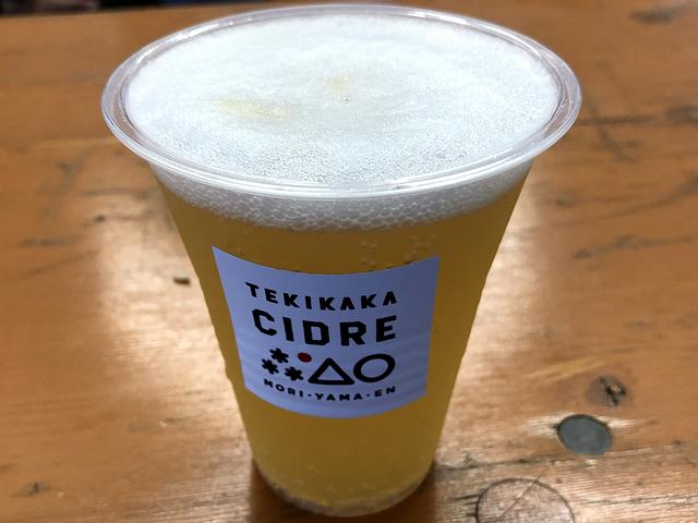 こちらは、的場騎手の新記録達成後、そのお祝いに一杯。ちなみに「テキカカ」とは摘果果のことで、林檎栽培の際、途中で間引く(摘果する)未熟果を使用して作られているそう。瓶からカップに注ぐ際のビールのような泡にも驚いたのですが、味的にも一般的なシードルと違って、酸味と渋味のあるグっと来る飲み応えが印象的でした。