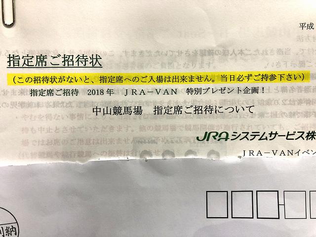 それで中を見てみると、2018年JRA-VAN特別プレゼント企画「中山競馬場 指定席ご招待について」という文書が入っているではありませんか!!