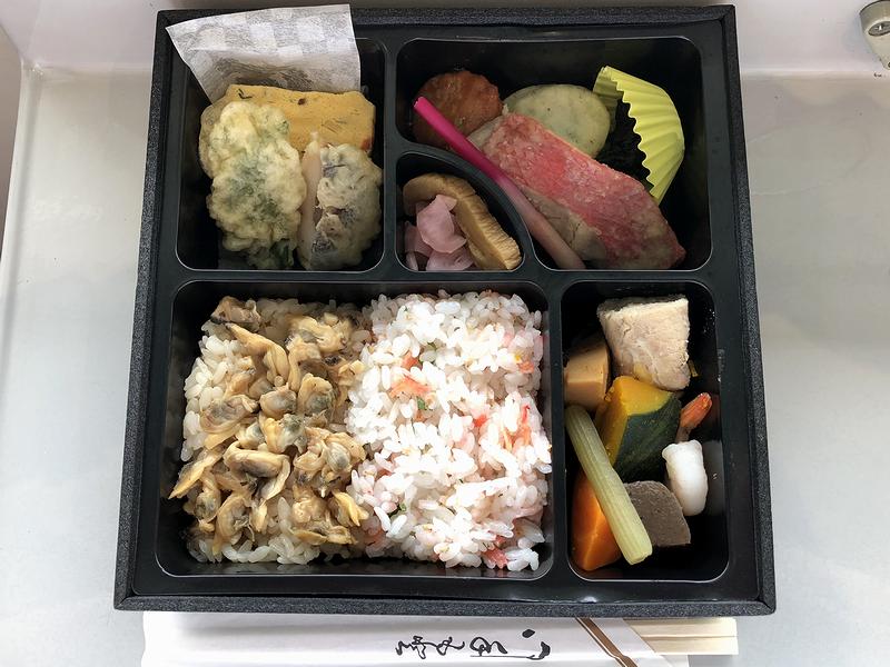 それでその万葉軒さんの中山競馬場90周年記念サービスというか記念メニューが、1日20個限定という中山競馬場90周年記念弁当。さすがになかなか良いお値段だけあって中身は豪華で、金目鯛の西京焼きを筆頭に、五目玉子焼き、鶏つくね、海苔さつま、椎茸エビ真丈揚げ、元気豚年輪巻き、鰯さんが揚げ、煮物など、おかずの種類が豊富すぎるほどで、更にはご飯も、煮アサリが載った茶飯と桜エビご飯の2種類が。で、おかずの種類が豊富という事は、つまみ的ポテンシャルも高いので、生ビールなどと共に美味しくいただきました。