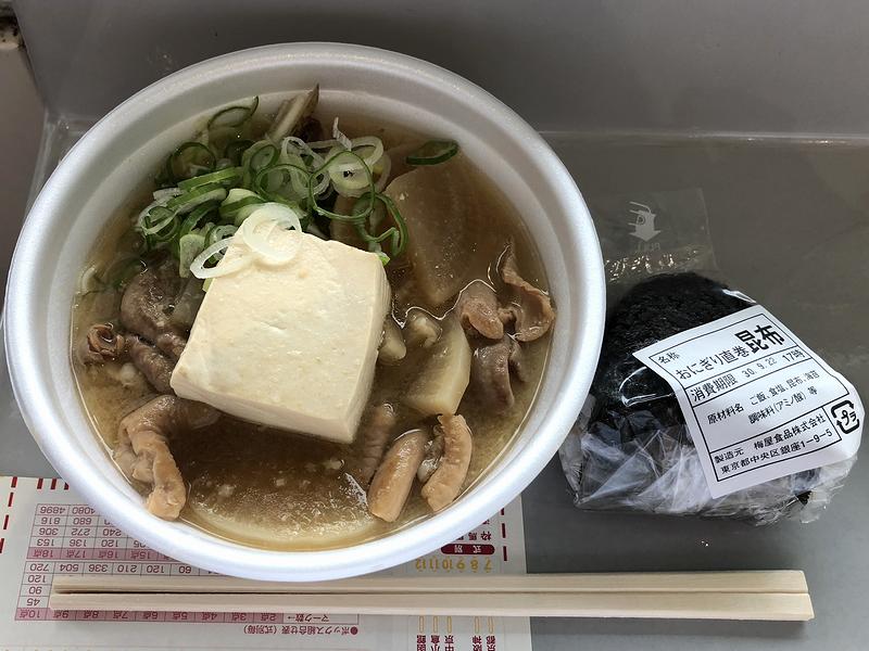 こちらは、レストラン棟1階にある方の梅屋さん。こちらは、そば・うどんに加え、おにぎり、煮込み(モツ煮)とアルコール類というラインナップ。