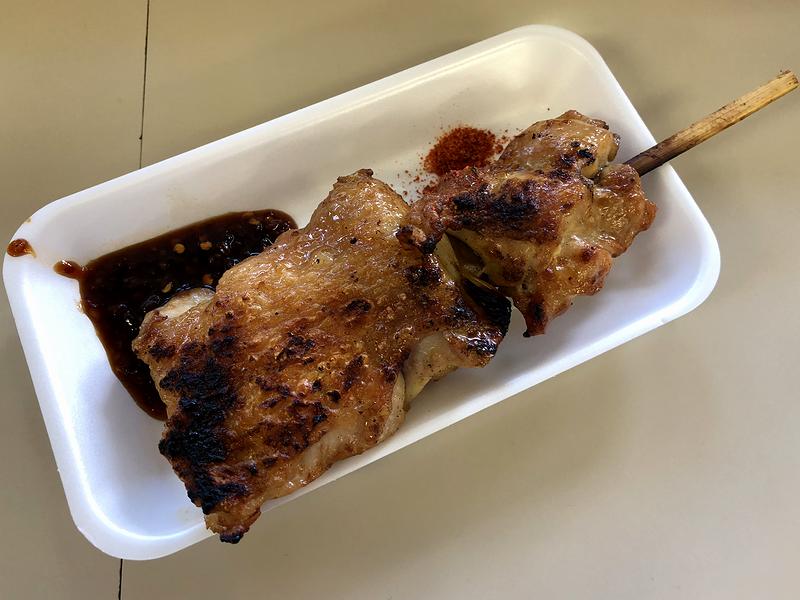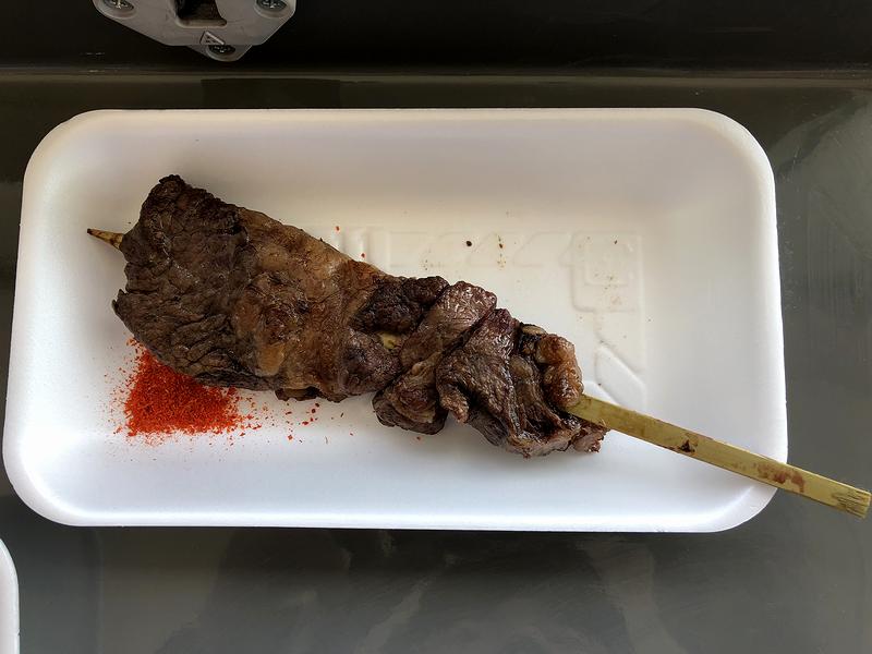 そこで何となく「肉」につられて購入してしまったのがこちらの牛串。もっとも、味は間違いが無く、ちょいと歯応えある部分もありましたが、それはそれでこういうお店っぽくて。で、それを噛みしだきながら、先述の焼酎ハイボールをぐいっとやるのは、悪くなかったです。