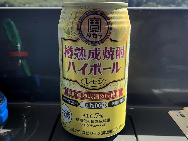 で、ここで売っている缶入りのアルコール類と言えば、前回まではキリンの氷結だけだったのですが、何と今回、宝酒造の缶チューハイとハイボールが。しかも、アルコール度数9%のもあったのですが、それだと早々にぼっ壊れそうだったので、今回は7%のものを何度か購入しました。
