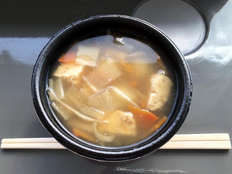 ですが、いただいたのは、腹具合の関係でこの一品のみとなってしまったという。それで「あまちゃん」で有名になったまめぶ汁ですが、うっすらとトロミの付いた醤油味のツユの中には、クルミと黒砂糖が入ったまめぶの他、凍り豆腐、油揚げ、ニンジン、ゴボウ、カンピョウ、ブナシメジといった具材が比較的細かく切られて入っています。で、あまちゃんの劇中ではネタ的扱いでしたが、個人的には、昔ながらの「ごちそう」の姿を残す食べ物という感じで、これはこれで美味しくいただきました。