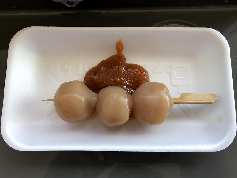こちらは、玉こんが好きなこともあって積極的に購入した品。で、玉こんと言えば、薬味は芥子、しかもゆるめに溶いたものと思い込んでいたのですが、こちらのお店では何と、田楽味噌っぽいものが置いてありました。(他に、チューブの和辛子もあり)で、面白そうだったのでのでその味噌でいってみたところ、何とも手作り感ある味わいで、これが、また。玉こん1本にしては(申し訳ないことに)取り過ぎてしまったのですが、残った味噌を嘗めながら先述の焼酎ハイボールをぐいっとやるのは、これまた悪くなかったです。