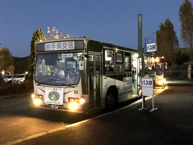 乗り込んだ17時50分発のバスは、乗った時に既に満員で、そこから更に乗客を増やして立っているのが辛い位の乗車率で発車。で、個人的には競馬場の外に出るまでがものすごく時間かかると読んでいたのですが、実際はさほどでもなく、17時57分頃、競馬場の外に。あとは夕方ということもあって混雑する市内を、停留所毎にパラパラと乗客を降ろしながら走り、18時30分、盛岡駅東口に到着。結局、朝の便より10分程余計にかかっただけでした。
