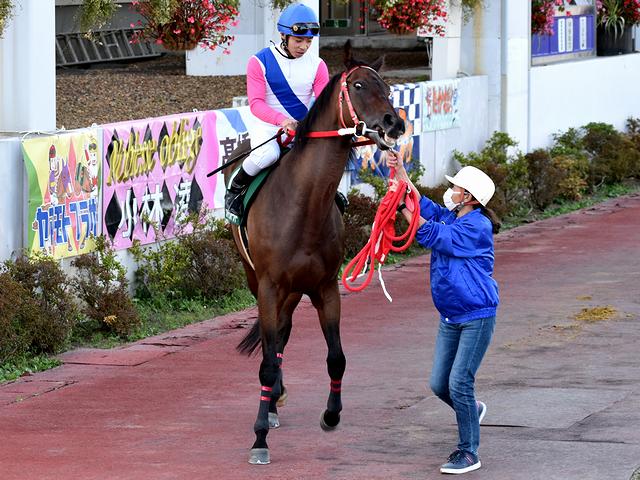 【7番人気の(6)シャドウパーティー号と高橋悠里騎手】