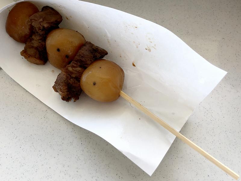 こちらは、昨年いただいて感銘を受けた品。一般的な玉こんと言えばスルメ出汁の醤油味だけど、こちらは贅沢に山形牛の甘味のある脂と醤油がコンニャクに染み、これが、もう。更にコンニャクの間には軟らかい牛肉が挟まっていて、これが、また。今回も美味しくいただきました。