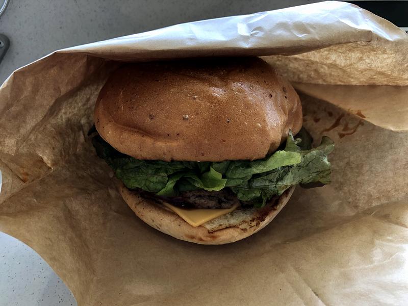そんな中から、同行者がいただいた品がこちら。「美味しい。ソースがスパイシー。」というような感想を申していたのですが、ちょっとだけ味見させて貰ったところ、ちゃんと焼かれたバンズに、ビーフ(だと思う)パティやチーズ、レタスなど具材もオーソドックスなのですが、ソースがケチャップ的味わいではなく、同行者が言うようにスパイシーなBBQソース的味わいだったかと。