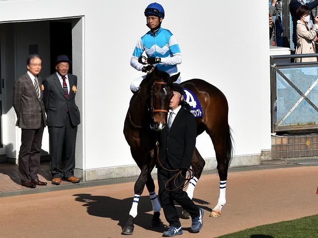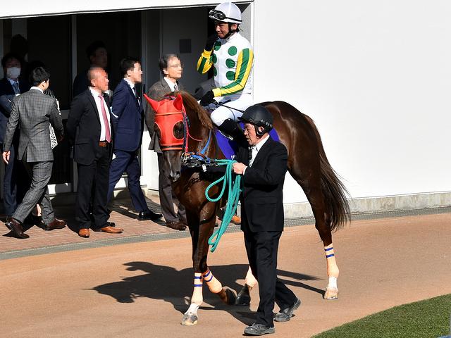 それで満を持して、中山グランドジャンプの前に行われる第10レースの出走馬が周回している頃にパドックに行ったところ、既に大勢の人たちが周りを取り囲んでいました。で、第10レースの出走各馬が馬場入りしても状況はさほど変わらず、逆に人が増えているような。それにしても、フェスでメインアクトの登場を待っているような心境でございます。