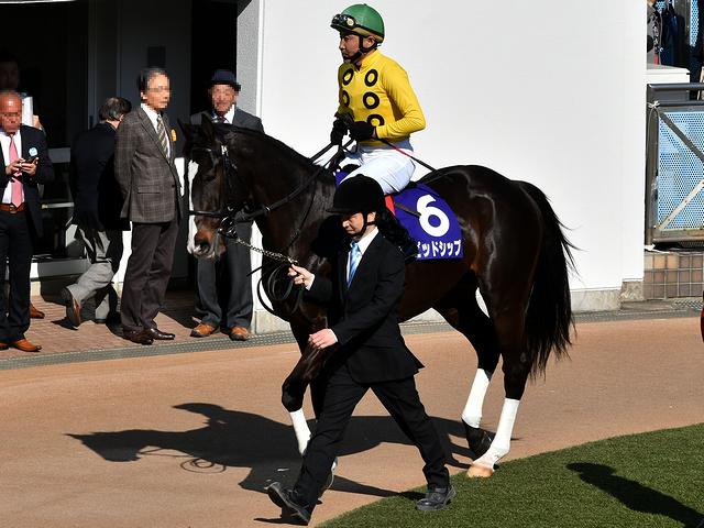 その後も人垣は増え続けたのですが、オジュウチョウサン号もこの盛り上がりに一役買っているのは間違いないところかと。で、午後3時5分過ぎ、そのメインアクトたるオジュウチョウサン号がパドックに入場。堂々たる周回で、素人目にも馬体がピカピカ輝いているように見えます。やがて停止命令がかかって騎手が騎乗。ちなみに鞍上の石神深一騎手は、このレースでJ・GⅠ7連勝が懸かっていたのですが、馬を引く厩務員の方と何やら談笑していて、とても自信を持ってこのレースに臨んでいることが見て取れました。