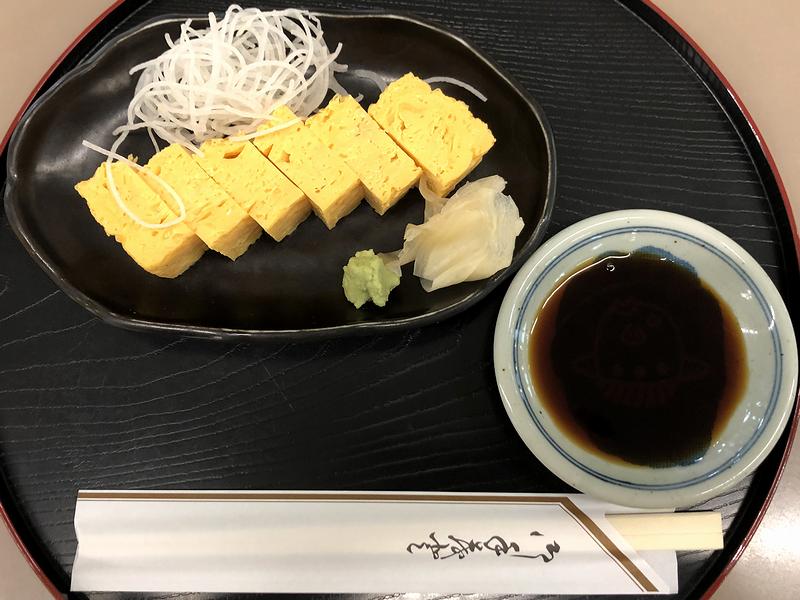 で、とりあえず時間も早かったのでおめざの玉子焼きと、景気づけに生ビールを。で、卵焼きはしっかり砂糖が効いた甘めの味付けが良いですね。