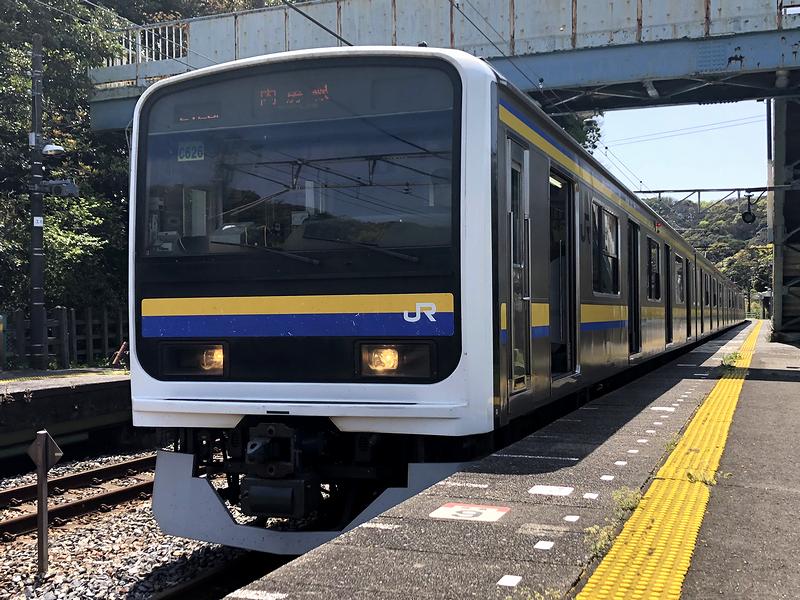 【君津駅に停車中の総武快速線・横須賀線直通久里浜行き快速列車】