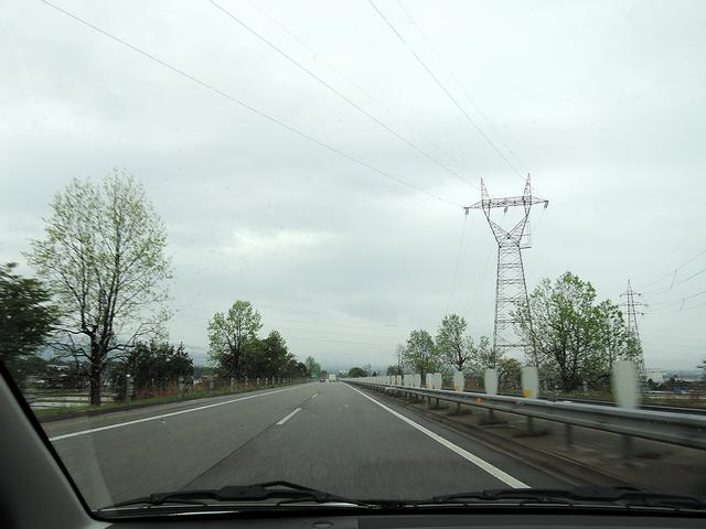 そんなわけで、予定通りの午前3時頃自宅を出発。生憎の雨模様で、しかも時折強めに降ったりしましたが、そんな中、最寄りのインターチェンジから東北自動車道に乗り、あとは途中休憩をちょいちょいはさみつつ、北関東自動車道、関越自動車道、上信越自動車道、北陸自動車道とひたすら高速道路を。このルートを通るのは久しぶりなのですが、長野のあたりでは桜がきれいだったり、上信越自動車道の対面通行区間が前よりも少なくなっていたり、独特な形状の高圧鉄塔を見て北陸道を実感したりと、今しか見られないものや以前と変わったり変わらなかったりしたものを見て、色々感慨を覚えつつ走りました。ちなみに、渋滞の方は予想通り巻き込まれずに済んだのですが、途中、上信越自動車道の上り坂でアクセルを踏みすぎたためか燃料が不安になり、北陸自動車自動に入ってから10リットルほど途中給油したのは誤算だったという。