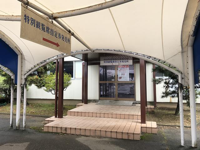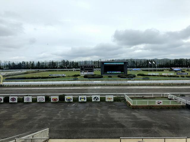 カーナビ代わりのスマホアプリの指示によって金沢森本インターチェンジで降り、一般道を走ること少々。金沢競馬場には、午前9時過ぎに到着したのですが、高速を走っている時は時折降っていた雨が、幸いなことにここまで来ると上がっていました。で、この時、開門時刻まで1時間を切っていたものの、駐車場はまだガラガラという状態。