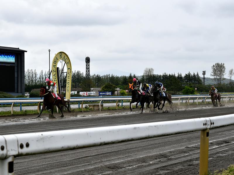 この日のメインレースは、A1級二組の特別戦、「楽天競馬で金沢競馬を楽しみましょう特別」。1700m、9頭立てで行われます。で、レースの方は、道中しんがり付近を追走していた1番人気(4)ティモシーブルー号(牡4歳・田知弘久騎手)が、最終第4コーナーあたりからスパートを掛け、最後の直線で見事な差し足を見せて勝利。2着は道中好位に付け最後の直線で勝馬に並んで追いかけるも最後置かれた(5)ミスアンナ号(牝5歳・青柳正義騎手)、3着は道中2番手に付け2週目第3コーナーあたりで先頭に立つも最後の直線で上位2頭に交わされた(8)オーバークロック号(せん8歳・吉原寛人騎手)と言う結果に。ちなみに馬券の方は、不良馬場での差し馬ということで勝ち馬を軽視してしまい不的中となってしまいました。