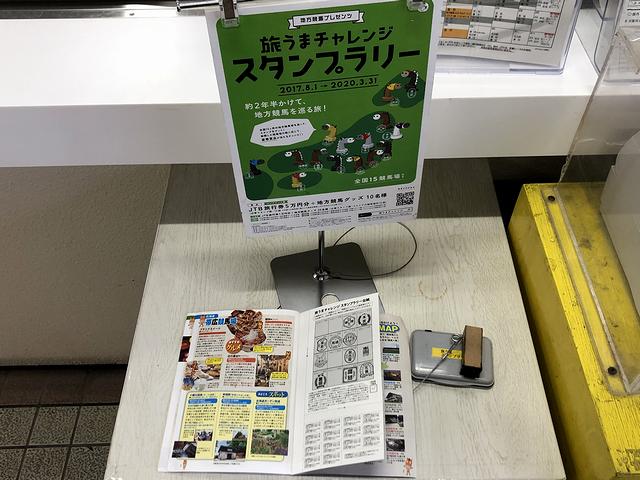 今回の最大のお目当てである旅うまチャレンジスタンプラリーですが、スタンプはスタンド1階の総合案内所でゲット。(あと、特別観覧席入口付近にもあったようです。)これで残りは帯広と門別、川崎、笠松、姫路の5場となりました。