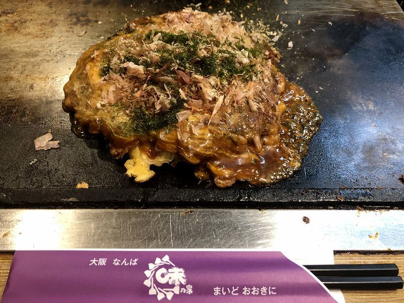 あとは、予約していた宿に向かうだけなのですが、その前にちょっと寄り道を。成田は小雨が降っていたにもかかわらず大阪は日差しが出ていて気温も高く、駅を出たときにちょっとクラっとしつつも、あらかじめ調べておいたお好み焼きの有名店へ徒歩で移動。今回の旅行中、競馬場以外ではなるべく「ベタ」な食べ物をいただこうと思っていたので。で、午後3時前というオフピーク時を狙ったにもかかわらず行例していたことに驚いたのですが、それでも、別記事に書いたとおり、わざわざお伺いした甲斐がある美味しさ。ビールと共にいただいたり、ご飯のおかずにしてみたりと十二分に堪能しました。
