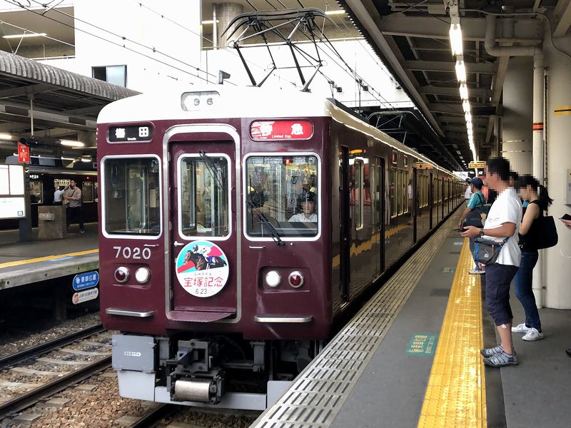 ただ、目覚めた時間はわりと早く、もうひと眠りしたところで確実に寝過ごしそうだったので、さっさと出発してしまうことに。というわけで身支度整えて宿を出て大阪メトロのなんば駅に向かい、6時55分発の御堂筋線中津行き普通列車に乗車。6分ほどで梅田駅に到着後、駅構内に飾り付けられた宝塚記念の諸々を眺めたり、コンビニに寄ったり、別記事に書いたとおり阪急電鉄改札内の立ち食いうどん店で朝食をいただいたりして時間を潰してから、お金が下ろせる午前8時ちょうどに軍資金を調達。急ぎ阪急神戸本線の乗り場へ。