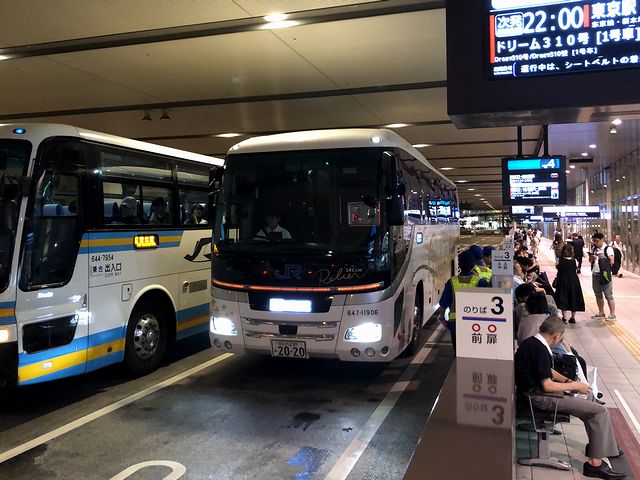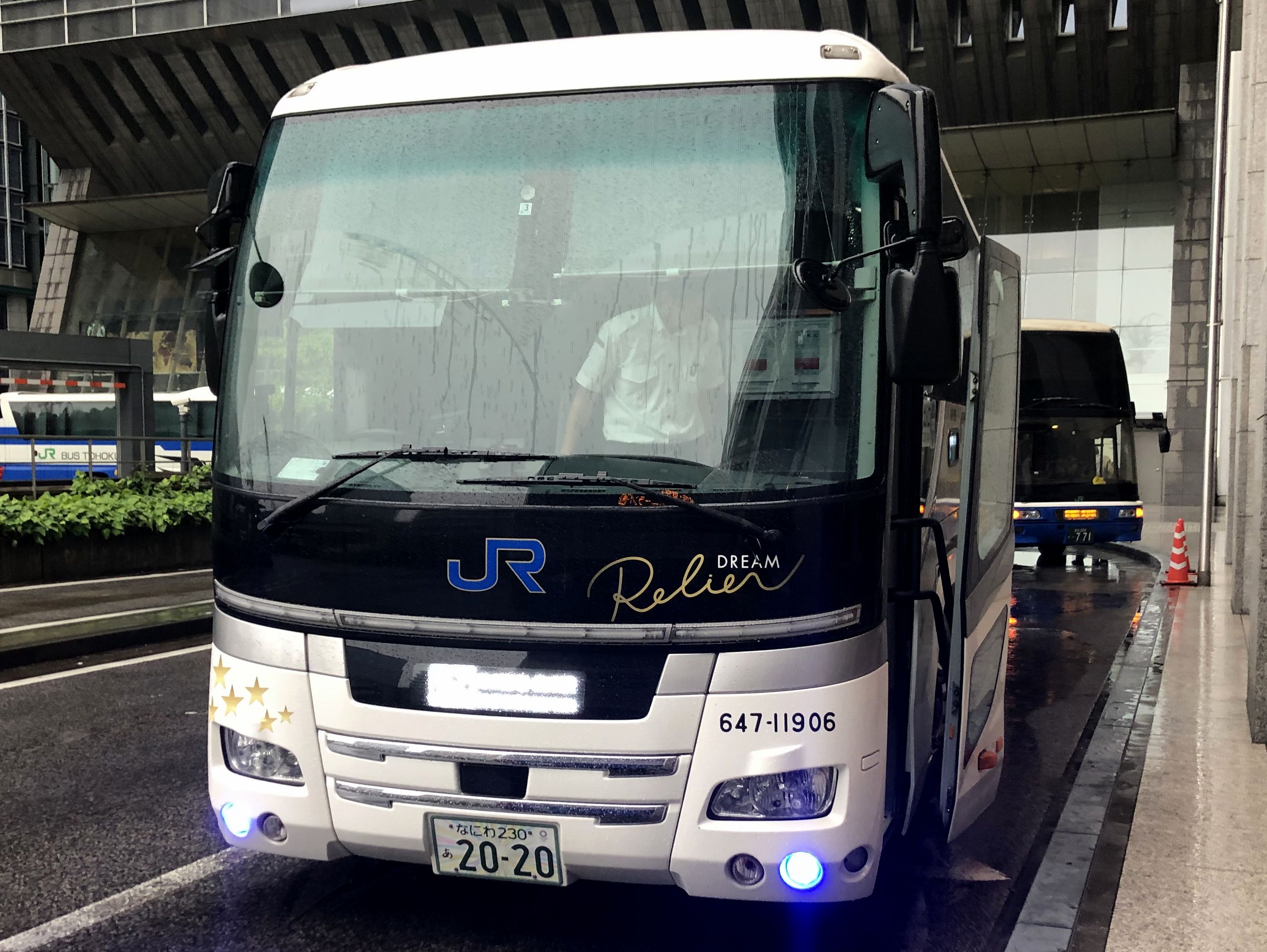 ドリームルリエ102号は順調に走り、休憩が設けられている東名高速道路鮎沢パーキングエリアには、定刻の4時27分よりも早着。トイレを済ませてまた一眠りして次に目覚めたのは、バスタ新宿停車のアナウンスでした。そのバスタ新宿には定刻より25分早い5時47分に到着。その後は小雨の中、皇居のお堀を見つつ走り、終点の東京駅日本橋口には定刻の6時37分より23分早い6時14分に到着。(バスという乗り物そのものに起因するもの以外は)とても快適に過ごせ、まだ乗り足りないという感覚さえも。ほんと、個人的にこれまで乗った夜行バスのなかでは最上級の快適さでした。あとどうでもいい話なのですが、このところ西の方から夜行バスで帰ってくると、何故かいつも雨なんですよね。