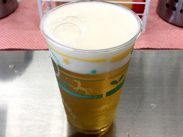 スタンド1階の最終コーナー寄りはフードコートになっているのですが、こちらはそのうちの1軒。メインの商品は、有名な西山製麺の麺を使ったラーメンと、カップに入ったつまみ類各種のようで。