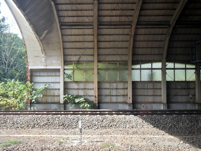 新札幌駅を出てから23分と、昨日のスーパー北斗号よりも少々かかって南千歳駅に到着。ここから千歳線と別れ、石勝線へと入ります。で、まずは室蘭本線と交差する追分駅に停車するのですが、このあたりはまだ、車窓に耕地が。そして次の川端駅を通過したら夕張川を渡るのですが、ここから次に停車する新夕張駅までは、この夕張川が作った狭い平地を、国道274号、道東自動車道と共に進むことに。更に次に通過するのが滝ノ下信号所。ちなみに石勝線は駅の数に対して、列車行き違いのための信号所の方が倍以上多いのが特徴的なのですが、その信号所の前後、ポイント部分を覆うスノーシェッドの数も多いのもまた特徴的だと思うんですよね。それとこの付近、夕張川をせき止めてできた川端ダムの姿を車窓から見ることができます。(ただし、写真に撮るのは失敗……。)