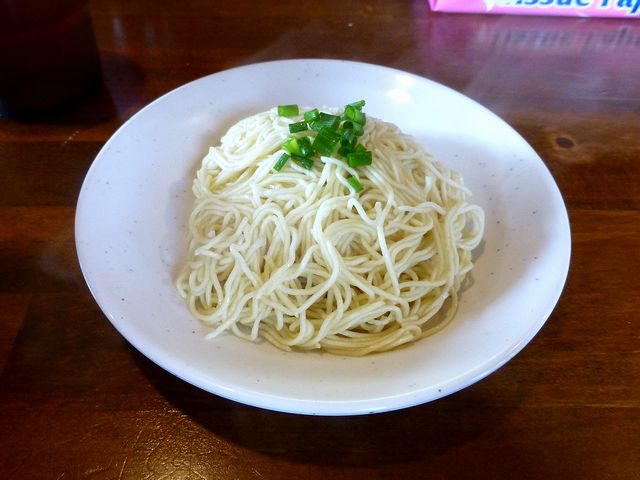 それで、いただいたのがこちらのラーメン。この日は、辛いラーメンがいただきたい気分だったので、哲辛ラーメンというのをいってみようと思っていたのですが、食券を買う時、何故か隣のこちらのボタンを押していました。で、食券提出後ほどなく登場。まずは、見た目からはあまり辛そうに感じられないスープからいただくと、最初はこちらのベースである豚骨と鶏ガラを乳化させたクリーミーな味わいが来ますが、その後結構な辛味が。で、この辛味が特徴的というか、口の中にズズンと来る重い辛さではなく、ピリピリっと軽い感じなのですが、辛さ自体はかなりの激辛です。麺は、極細の低加水タイプ。先日いただいてきた長浜の有名店よりも細いです。で、固さは普通でお願いしたのですが、若干しなっとした食感。ちなみに替玉はバリ固でいただいたのですが、個人的にはこちらの方が好みでした。(って、宇都宮のお店にお伺いした時、「次は最初からバリ固で」なんて書いていたのをすっかりと忘れてたりして。)具は、たっぷりと載るネギがクリーミーなスープに合っていて良いですね。