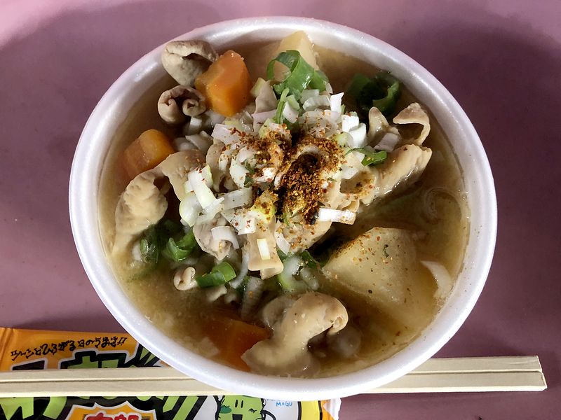 カシマサッカースタジアム名物のスタジアムグルメがもつ煮。で、スタジアム内の様々な売店で売られているのですが、ビジター側ゴール裏の「かしまメティエ」さんにもちゃんと有りました。で、大と小(300円)のうち大にしたら結構なボリュームだったのですが、お味の方も名物に相応しい旨さ。豚モツがプリプリしていたのは新鮮だからですかね?当然変な匂いもなく、ニンニクの効いたあっさりした味噌ベースの味付けもいい感じでした。