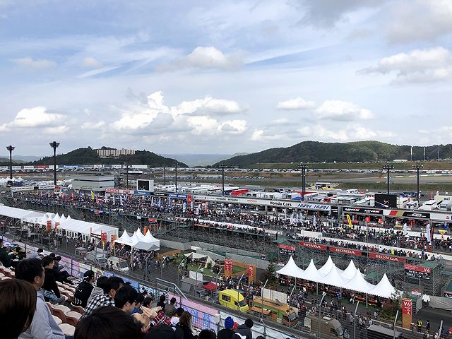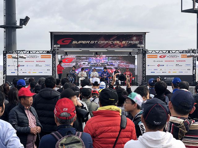 FIA-F4 第14戦の後、暫くはコース上でのイベントは行われないので、この時間を利用して食料の調達からの個人的ウォームアップ(ようは飲酒。)開始。それにしても、ピットウォークは昨日以上の混雑ですね。そしてその一方、私の席の裏手あたりにあった特設ステージでは、J SPORTSのオンデマンド中継ではお馴染みのドライバートークショーなどのイベントがひっきりなしに行われていて、結構盛り上がっているようでした。