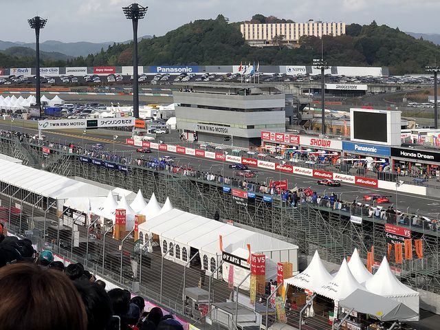 最初は各車で間隔を空けて走行した後、最後の周の直線は3台並んでの走行。今年は、これまでの7戦でトヨタ(レクサス)が5勝、ホンダとニッサンが各1勝と、完全にトヨタのシーズンになってしまったのですが、どのメーカーも全く新しいクルマとなる来年は一体どんなシーズンになるのか、今からとても楽しみになりました。