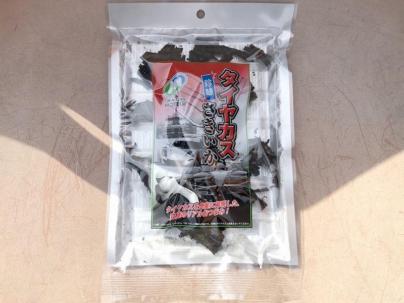 そこで酒のつまみに購入したのが、こちらの品。レース中に飛び散るタイヤカスがモチーフって、ネタとしてもかなり攻めてるような気が。ちなみに、黒い色はイカスミだそうです。で、この日は持ち帰りとなり、後日自宅でいただいたのですが、味付けは甘味と、ピリッとした辛味が効いていて、更にイカスミ由来の風味と旨味が加わったリッチなさきイカといった塩梅。これは美味いですね。
