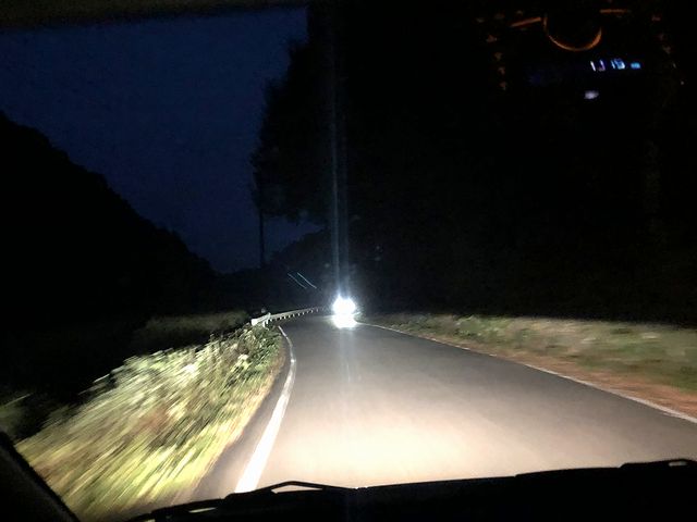 飲んでいたので帰りの運転は同行者が担当。昨日、私のスマホのナビアプリだよりで帰った際、栃木県道338号芳賀茂木線を案内されて相当エキサイティングな思いをしたのですが、同行者が使う私のと別のナビアプリはもっと凄かったというか、県道338号から分岐する栃木県道171号山内上境線をルートに指定。途中、ガードレールもなく、幅員が普通車1台ギリギリの区間がわりとあって、昨日よりもエキサイティングかつデンジャラス!!(昼間だと、棚田の景色がキレイなようですがね。)そこを(主に私が)ヒーヒー言いながら走り抜けると、那須烏山市のまちなかに出ていました。