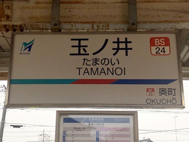 思ったとおりの場所に改札口があったので、焦ること無く駅舎の外に出て写真を撮ることが。それにしてもこの玉ノ井駅。ホームには先述の木製架線柱など懐かしい雰囲気が漂っていたものの、コンパクトな駅舎はだいぶ新しげ。それで今でこそ尾西線の終点になっている玉ノ井駅ですが、かつてはこの先、木曽川のほとりまで路線は延びていて、旅客駅の終点が、木曽川橋の袂に木曽川橋駅。そしてその先、木曽川の堤防を越えたところに、貨物駅の木曽川港駅があったとのこと。また現在の名鉄名古屋本線が出来るまでは、木曽川橋駅で列車を降り、木曽川橋を徒歩、後にバスで渡ってから、対岸の笠松駅(現在の笠松駅とは若干違う場所にあった、初代笠松駅。)で再び列車に乗り換えて岐阜に向かったそうです。