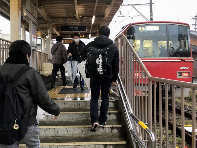 扉が開き早速乗り込むと、ホームに待っている人数の割にはあまり乗ってこなかったというか、6人掛けのロングシートに座った乗客は4人程度。私も、乗車を待つ列の先頭じゃなくてもシートに座ることが。ですが、ドア付近には立っている学生も多数いて、それを不思議に思っていたところ、その学生さんたちは、次の町方駅で降りていきました。