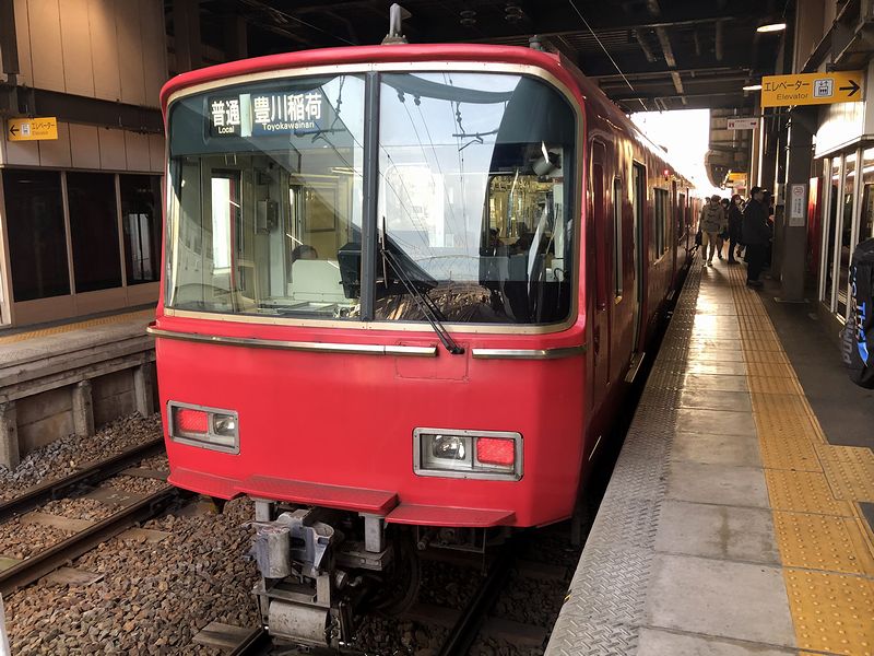 ここで取ったリカバリー策は、豊橋駅7時36分発の犬山行き特急列車(そう、先程乗ってきた列車の折返し。)に乗ること。国府駅で豊川線の普通列車に乗り換えて豊川稲荷駅まで往復すれば、その先は予定どおりに行けることは、計画を立てる時に乗り継ぎを調べていて気が付いたんです。と、この時は豊川/豊川稲荷駅での滞在時間が極端に短くなり、ここで予定していた朝食を食べ逃すことくらいのダメージで済むと思ってしまったのですが、後で考えるとこれも失敗だったというか、予定の逆ルートを通れば、豊川/豊川稲荷駅での滞在時間をさほど減らすことなく、予定どおり朝食が食べられたんですよね。(まぁ、当時の判断を後から「神の視点」で批判してもあまり意味はないのですが。)