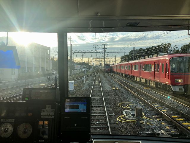 降りたホームの反対側に停車していたのは、昨日の尾西線でも乗った6800系電車の2両編成。先頭の6833(ク6800形)に乗車。調べたところ、平成3年に製造され、平成23年(2011年)に尾西線・豊川線のワンマン運転化に合わせてそれ用に改造された編成のようです。