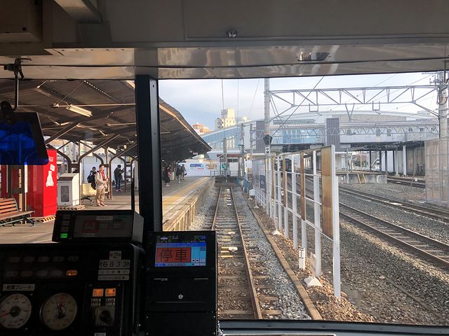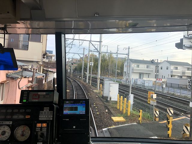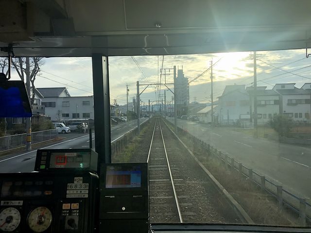 というわけで豊川稲荷駅から乗るのが、先程列車の折返しとなる、8時5分発の国府行き普通列車。今度は気をつけていたのでので豊橋駅のような目に合わず、定刻のちょっと前には乗車できていたのですが、列車の発車が1分遅れました。それで乗車したのは2両編成の先頭車、6933(モ6900形)に乗車。行きは前を見ようと乗務員室直後に立っていたので帰りはロングシートに座って暫しのあいだ休憩を。行きもそれほど混雑していなかったのですが、帰りはもっとガラガラの車内。反対側の窓越しに見えるのは住宅ばかりという感じで、景色よりも府中駅に着いてからのことを、手持ちのスマートフォンを使ってネット検索。ですが、ここでやらかしてしまったというか、この豊橋線は、途中の諏訪町駅と八幡駅の間に、列車交換のための諏訪新道信号場というのがあり、国府行きの列車はここで一時停止するんですよね。それを写真にでも収めようと思っていたのですが、すっかりと忘れ、発車した時に「あっ!」と。やはり今日はどうも駄目っぽいようで。