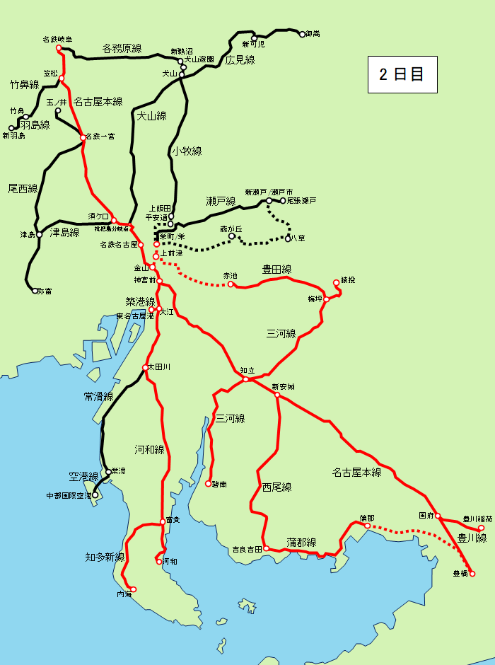 その三河線ですが、先程、蒲郡線のところでも述べたように、元々は三河鉄道が大正3年(1914年)に刈谷新駅(現在の刈谷駅)から大浜港駅(現在の碧南駅)まで開通させた路線が始まり。で海側は、翌大正4年(1915年)に新川町駅と新川口駅を結ぶ新川口支線(昭和30年(1955年)廃止)と、大浜港駅と大浜口駅を結ぶ大浜口支線(昭和21年(1946年)廃止)が開業すると共に、大浜港駅から路線を延伸させ、昭和3年(1928年)に三河吉田駅(現在の吉良吉田駅)まで、昭和11年(1936年)には蒲郡駅まで全通させました。