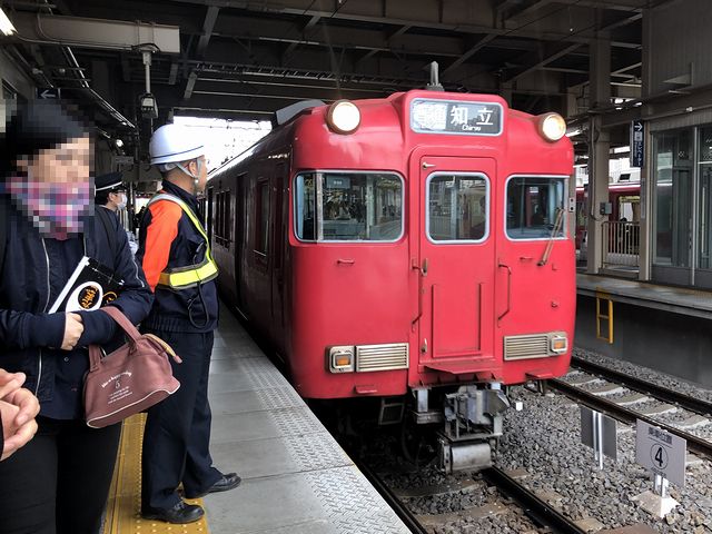この車両では先頭の乗務員室直後のロングシートが優先席になっていた(加えて、仕切壁に付いている窓に位置が高いので、よしんば座れたとしても前を眺めるのはキツイ)ので、座っての前面展望は諦め7人掛けのロングシートへ適当に着座。シートはほぼ埋まり、立ち客も出るくらい混雑した列車は、定刻の10時31分に知立駅を発車しました。