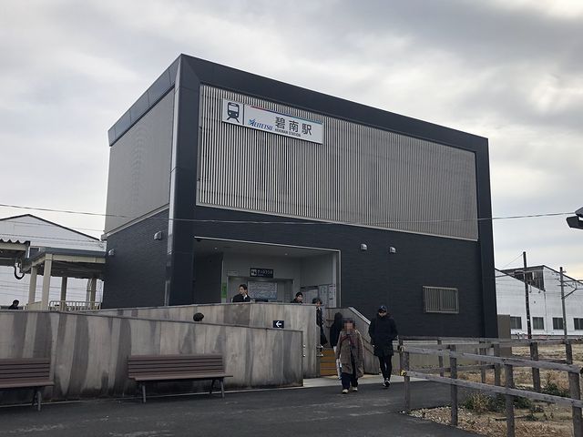 刈谷市駅を出て程なく、町並みが一瞬途切れた後、猿渡川という川を渡ると列車は地上に降りて、景色は先程までの都会から住宅地へと変化。駅に停まるごとに乗客をパラパラと降ろします。そして知立駅を出てから約20分で三河高浜駅に停車して列車交換。ここでもパラパラと下車して車内はだいぶ空いてきたにもかかわらず、何故か私の座っているシートだけ人口密度高いというか、向かい側のロングシートはこの駅で乗客が0人になったのに対して、私が座っているロングシートは(私を含めて)6人で座っているという。昨日、名鉄岐阜駅から乗った犬山行き普通列車のように、車内が混んでるにもかかわらず隣の席が空いているのも凹みますが、これはこれで微妙な状態。やがて知立駅を出て30分少々、新川町駅で再び列車交換し、次の碧南中央駅で私の座っているロングシートの乗客は一気に3人まで減ったのですが、次は終点の碧南駅。到着は、11時7分の定刻でした。