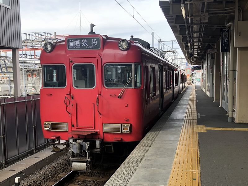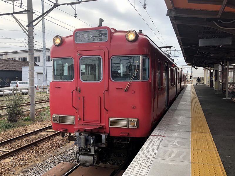で、まずは海線から乗るべく、10時31分発の碧南行き普通列車に乗り換え。降りた5番線の向かい側、6番線に入ってきたのは蒲郡線でも乗った6000系の2両編成。乗車した先頭車の6021(ク6000形)は、昭和55年(1980年)製で、そこからこの40年の間、平成元年(1989年)に車内のロングシート化、平成8年(1996年)に4両編成から2両編成に変更、平成13年(2001年)に三河線用のワンマン運転対応に改造、更に平成29年(2017年)には車体の補強や内装の交換など大規模な整備が施されています。