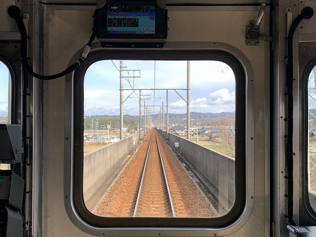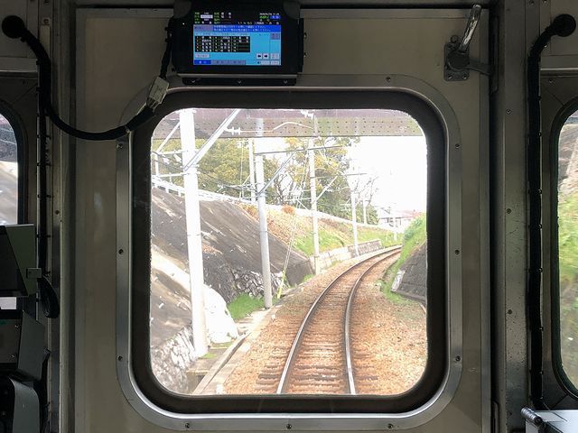 三河八橋駅を発車した列車は、高架線の構造物は複線用だけど線路は単線という区間を走行しつつその途中、伊勢湾岸自動車道が更にその上を跨いでいきました。それにしても、知立駅を出て以来、大きな道路と交差してばっかりですね。で、地上に降り程なくすると、乗務員室から女性の声で自動で流れるぽい正午の時報が。そういえば、朝イチで乗ったパノラマカー以来、この乗務員室から毎正時に聞こえてくる時報を何回も聞いた気がする=とても時間が経ったように感じるのですが、まだ正午なんですよね。
