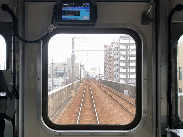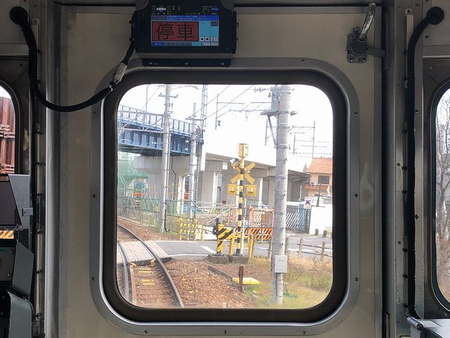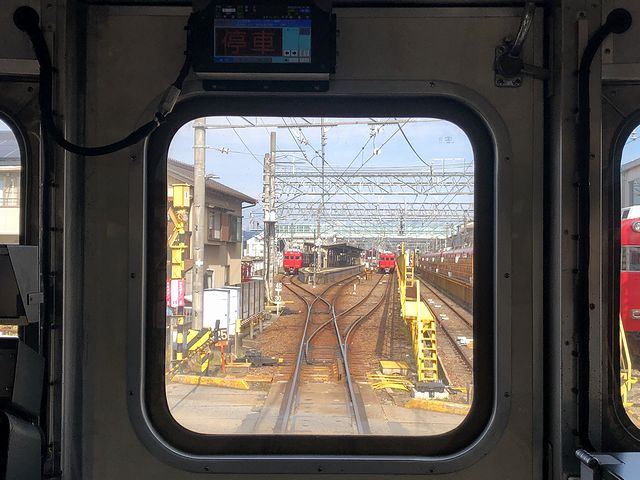 猿渡川を渡ると高架線に登った列車は、高いビルの間に入って刈谷市駅に停車。次の刈谷駅までの区間は複線区間を走り、地上に降りると右にカーブしつつ刈谷駅に進入するのですが、景色からだと勝手口から入るような雰囲気。その刈谷駅で4度目の列車交換を行ってから発車すると、線路は再び単線に戻り、左にカーブしてJR東海道本線を跨いで交差。次の重原駅からは再び複線になり、東海道新幹線を潜(くぐ)って交差。左にきつめのカーブを切れば山線と合流して、定刻の11時43分、海線の列車の終着駅、知立駅へと戻ってきました。